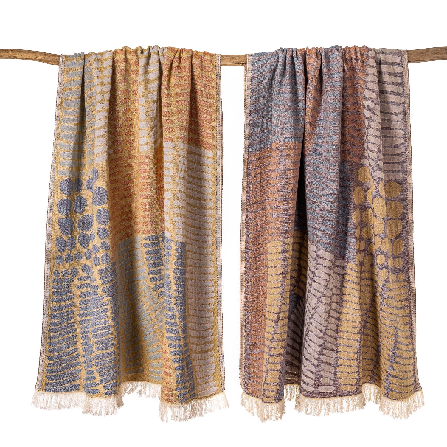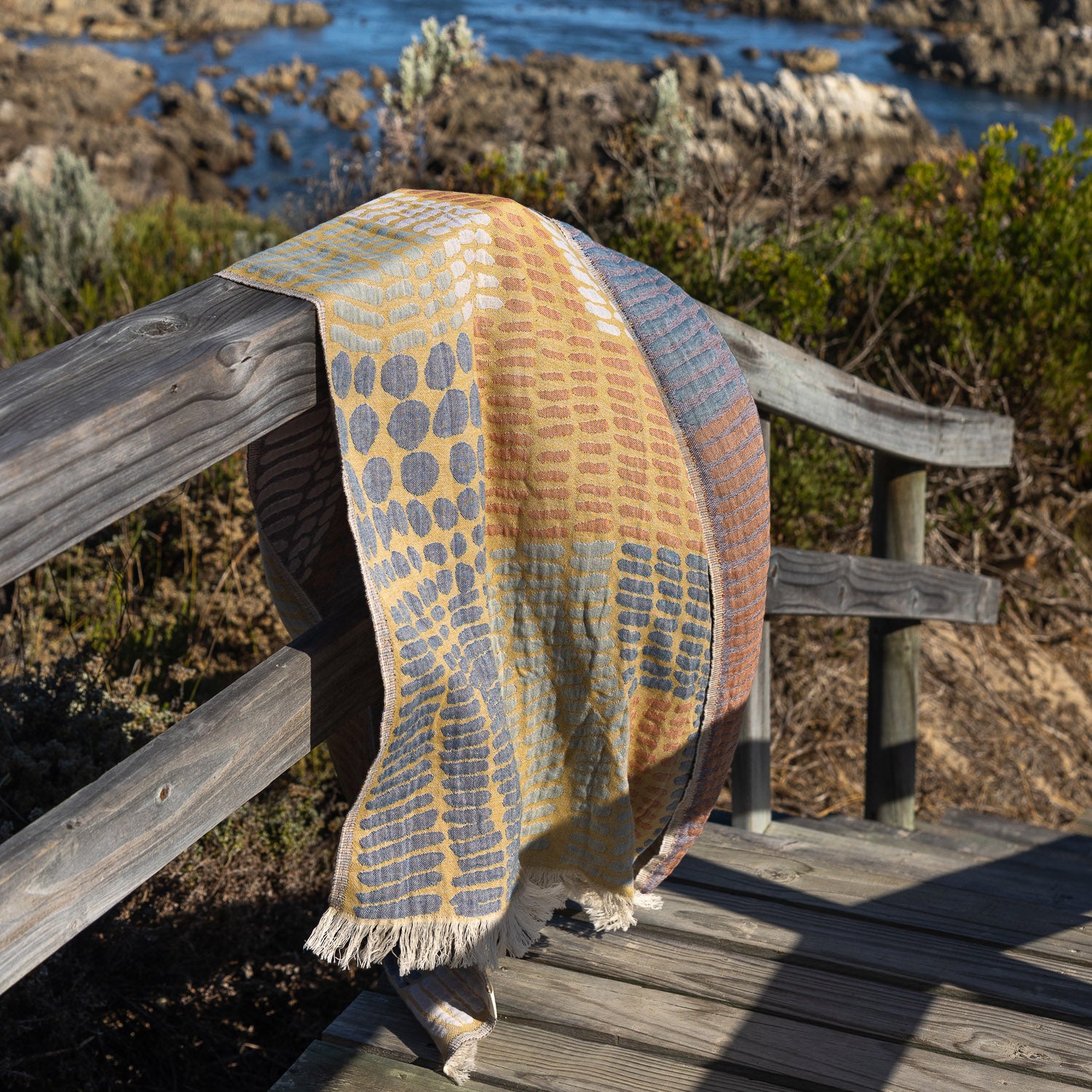 With its unique blend of warmth and absorbency, the Adel is designed to soothe your nervous system. Inspired by the intricate patterns of Klimt's gold leaf masterpieces and woven in 5 layered muslin, the Adel offers the perfect balance of luxury and functionality, whether used as a beach or bath towel, a meditation shawl or yoga blanket, or the perfect year-round companion for cold water swimming.