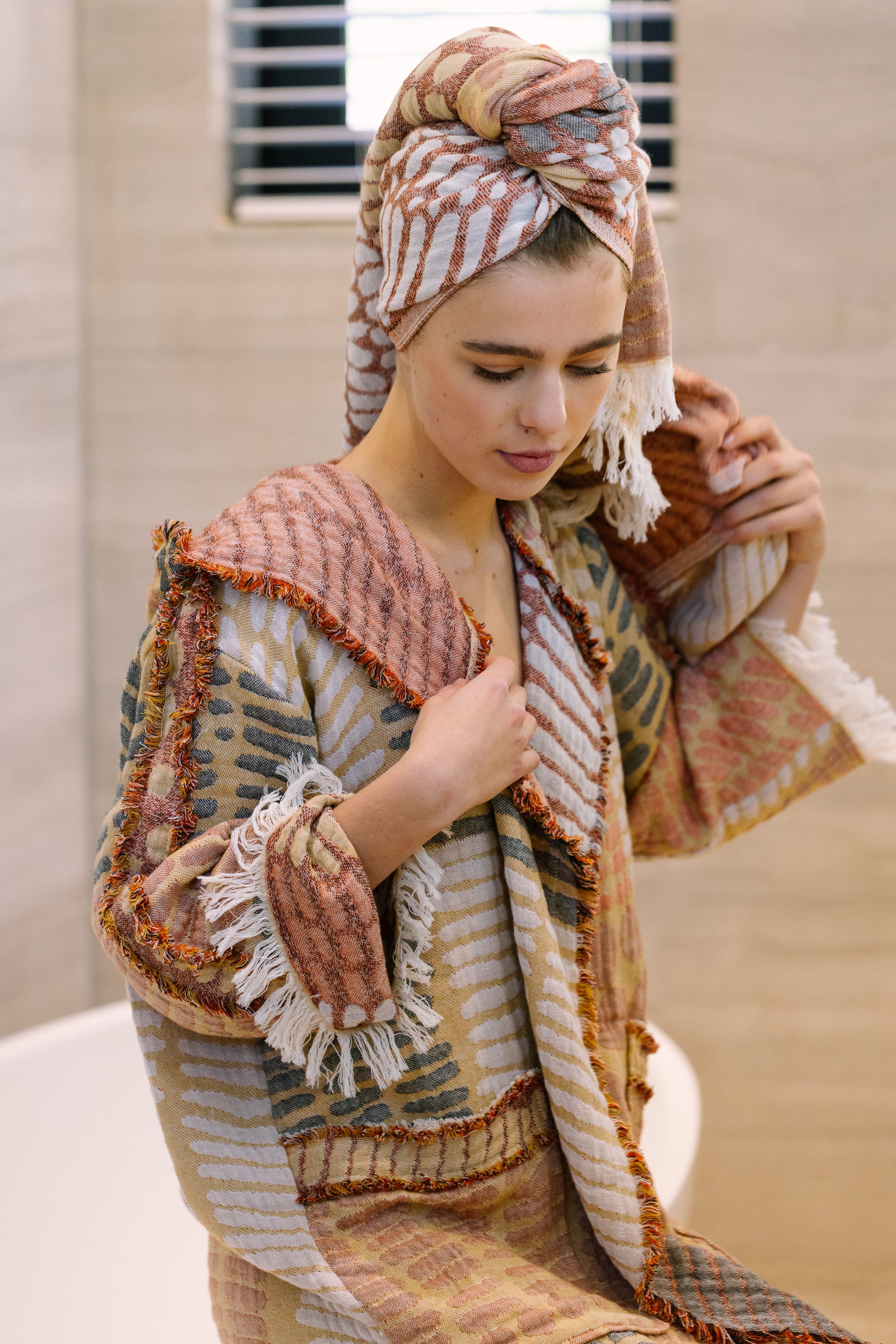 Drawing inspiration from Klimt's gold leaf masterpieces, Adel offers the perfect solution for cold plunges - combining the cozy warmth of a blanket with the high absorbency of a towel.