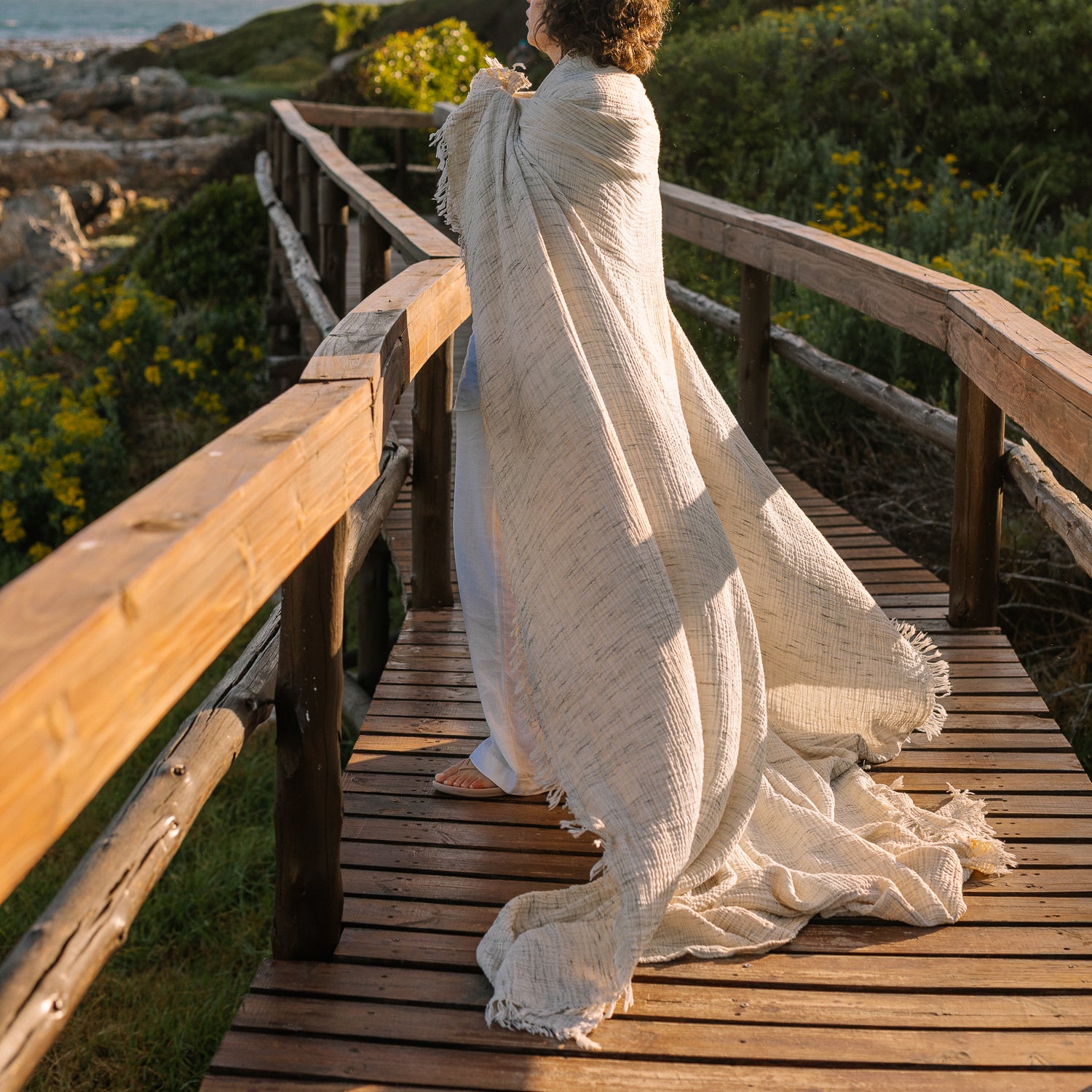 Sleep like a baby in a weightless cloud of love. Our swaddle blankets for grown-ups are woven in 4 layers of huggable cotton muslin. They’re incredible for sleeping under on their own on hot nights, Mediterranean style, and also ideal as a soothing layering piece in winter.