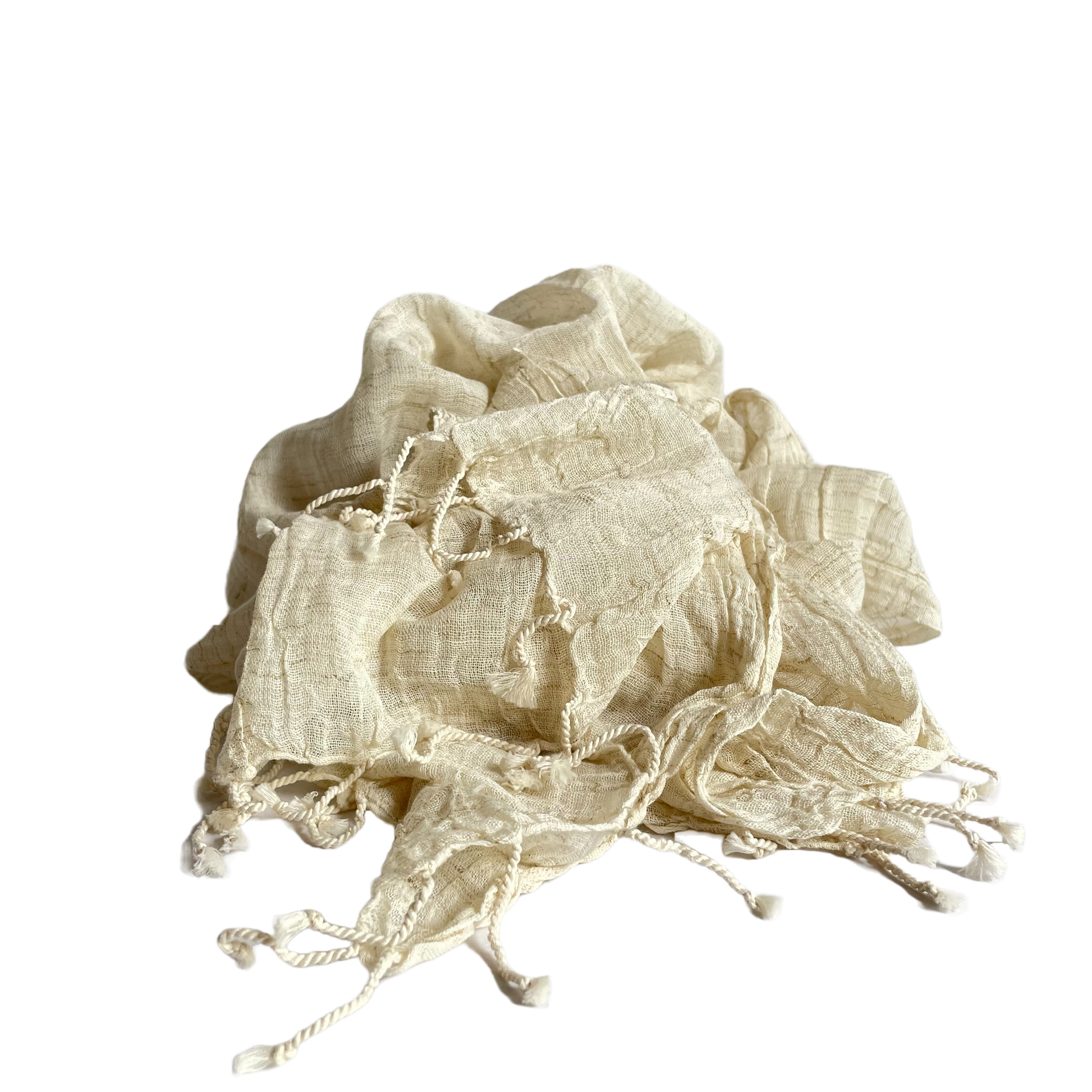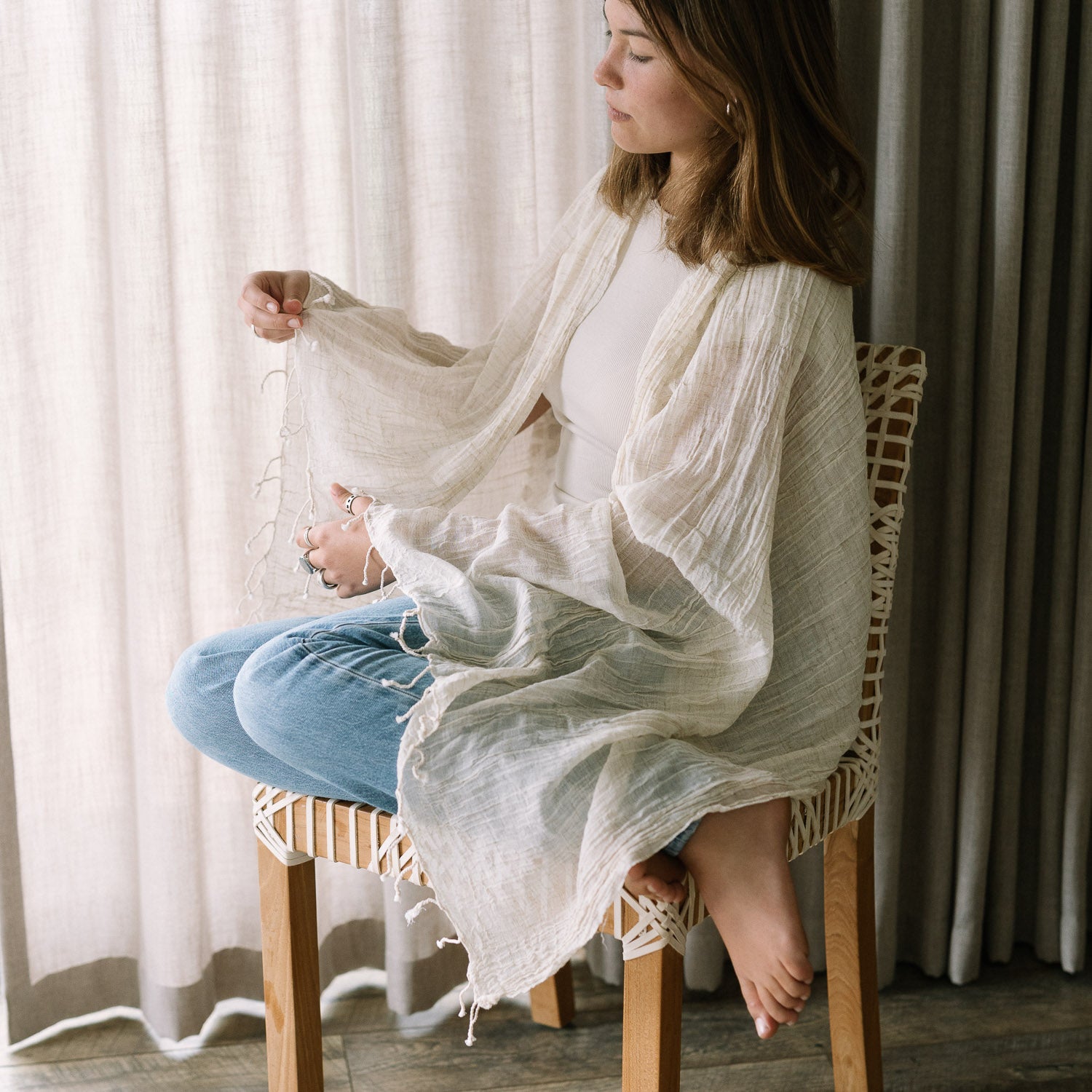 Lovingly handwoven on a very old wooden loom, the delicate Asya scarf is a year-round elegant wardrobe staple.