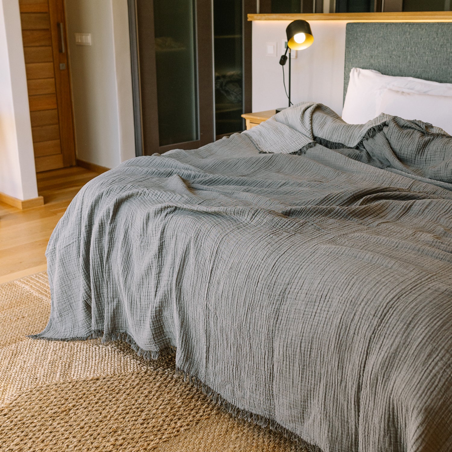 Sleep like a baby in a weightless cloud of love. Our swaddle blankets for grown-ups are woven in 4 layers of huggable cotton muslin. They’re incredible for sleeping under on their own on hot nights, Mediterranean style, and also ideal as a soothing layering piece in winter.