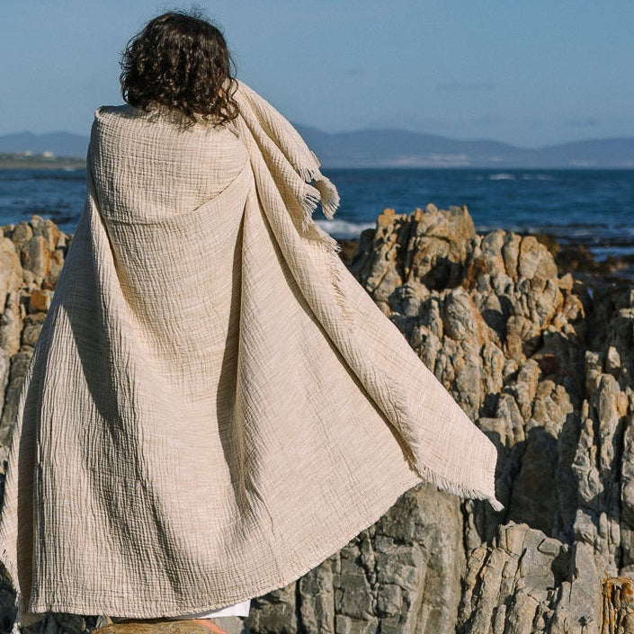 Sleep like a baby in a weightless cloud of love. Our swaddle blankets for grown-ups are woven in 4 layers of huggable cotton muslin. They’re incredible for sleeping under on their own on hot nights, Mediterranean style, and also ideal as a soothing layering piece in winter.